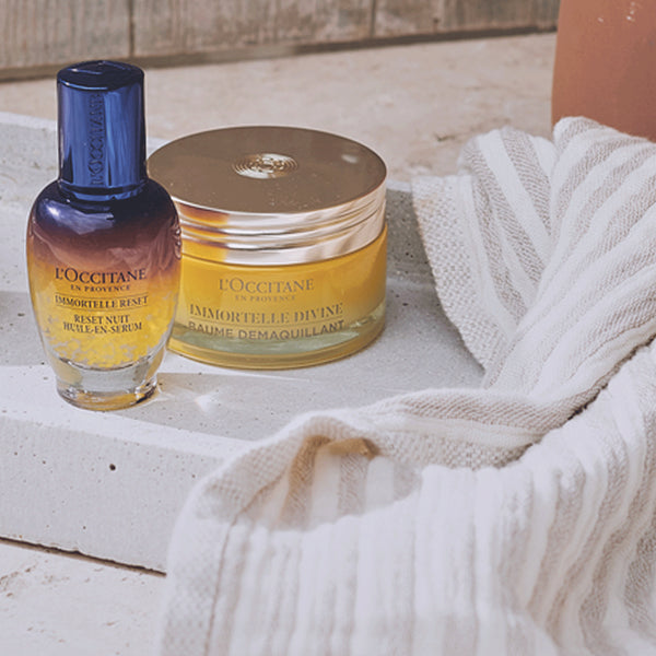 The Immortelle Cleansing Balm, which transforms into a luxurious oil on contact, effortlessly removes waterproof makeup without drying out the skin. Thanks to the antioxidant-rich immortelle essential oil, the skin becomes brighter, softer, and more supple. Use it on its own, or as the first step in a double cleansing routine to remove impurities and prepare the skin to better absorb beneficial skincare products. The Immortelle Cleansing Balm can also be used as a mask for noticeably softer and more nourished skin.