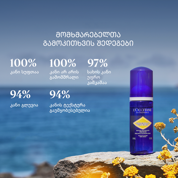 RADIANT SKIN . SMOOTHER TEXTURE This light foam, gently cleanses the skin and removes makeup while revealing radiant, visibly clearer skin and smoother texture immediately after application. Carefully formulated with Immortelle essential oil from Corsica, lentil extract and wintergreen extract.