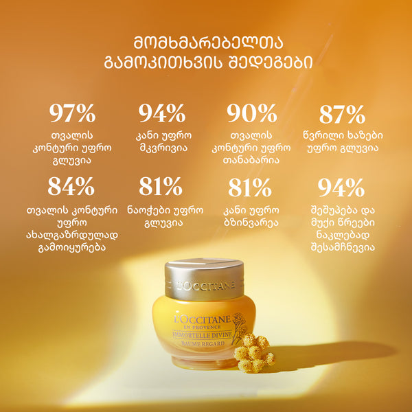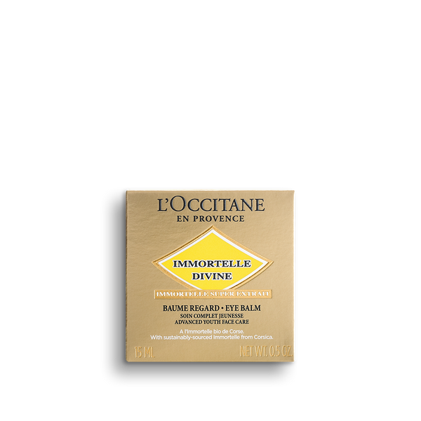 With its buttery, still melting texture, Divine Eye Balm helps to sculpt your eye contour and tackle the visible aging signs specific to the delicate eye area. Starring 4 Immortelle extracts including Immortelle Super Extract, a natural alternative to Retinol, and nourishing shea butter, this balm and mask visibly acts on wrinkles, firmness, evenness and luminosity for young-looking eye contour under all angles.