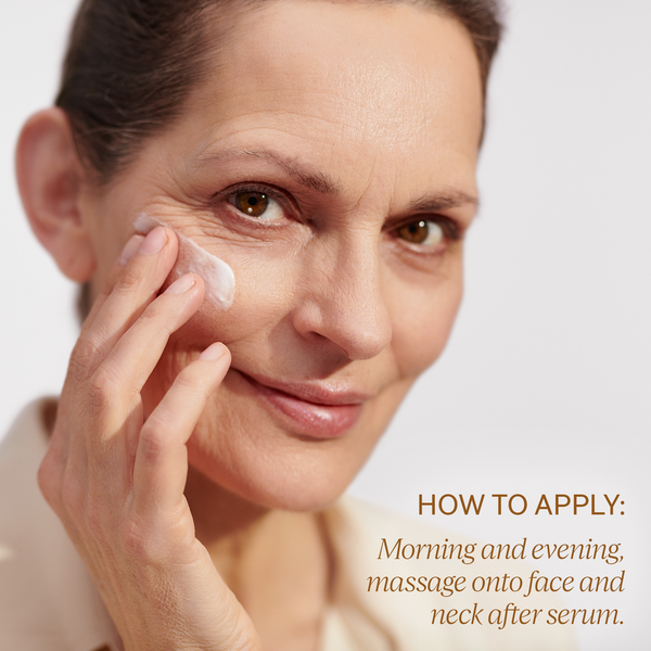 Massage this satin-like, oil-in-cream from the center of the face, down to the neck and décolleté. Apply morning and evening. Avoid contact with eyes