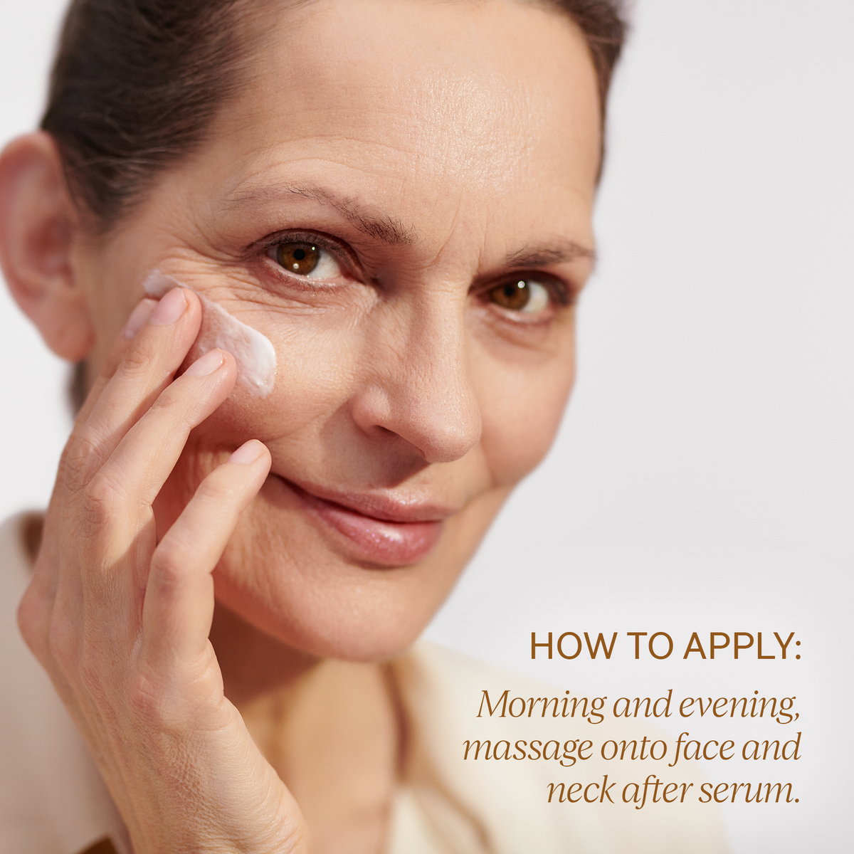 გამოიყენება დილა-საღამოს სახესა და კისერზე. დაიტანეთ სუფთა, მშრალ კანზე და ნაზად შეიზილეთ. რეკომენდებულია ყველა ტიპის სახის კანისთვის.